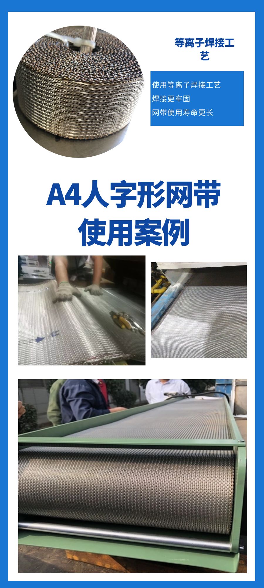 生產的網帶產品具備耐磨耐腐蝕、耐高溫、不易變形、高強承重等多種優異性能,可以根據具體需求,定制特殊性能的產品。